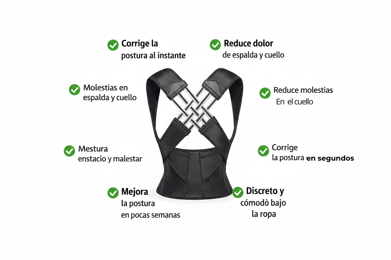Mejora tu postura de forma cómoda y natural. Este corrector de postura ayuda a mantener la espalda recta y los hombros alineados, reduciendo dolores de espalda y cuello causados por malas posturas.